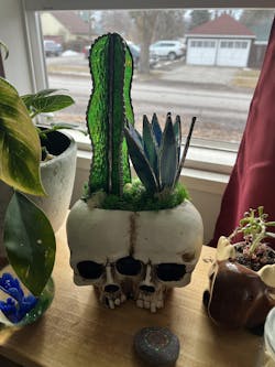 Loved the little alien abduction stained glass stake. Its adorable in my potted plant