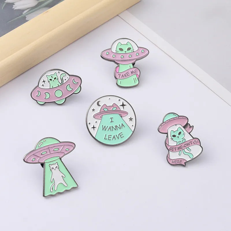 These little alien cats will make your lapel purr with delight! Add these cute pins to your collection and be the envy of all your friends--no matter what planet they're from.