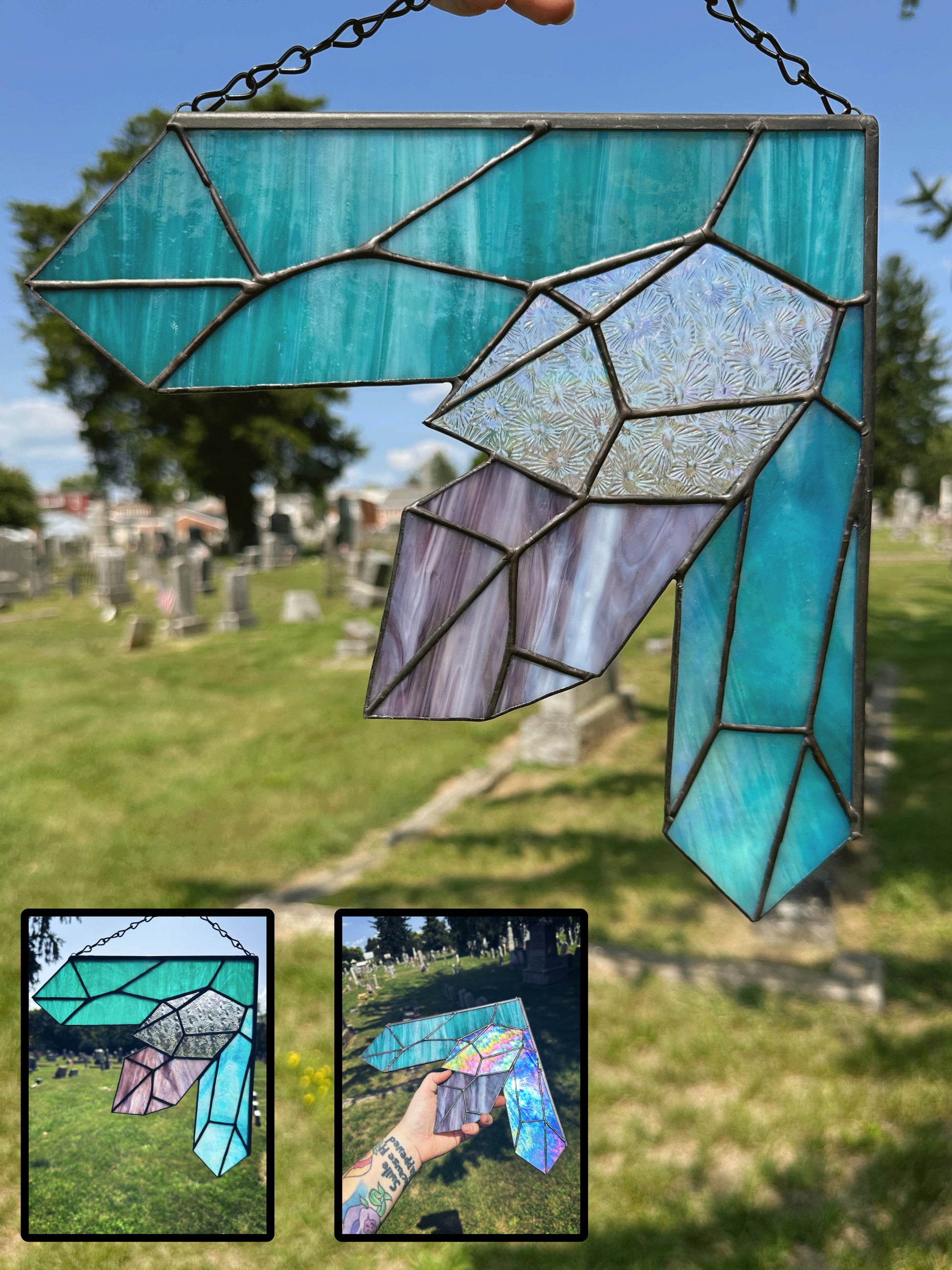 Suitable to hang either in a window or on a wall.