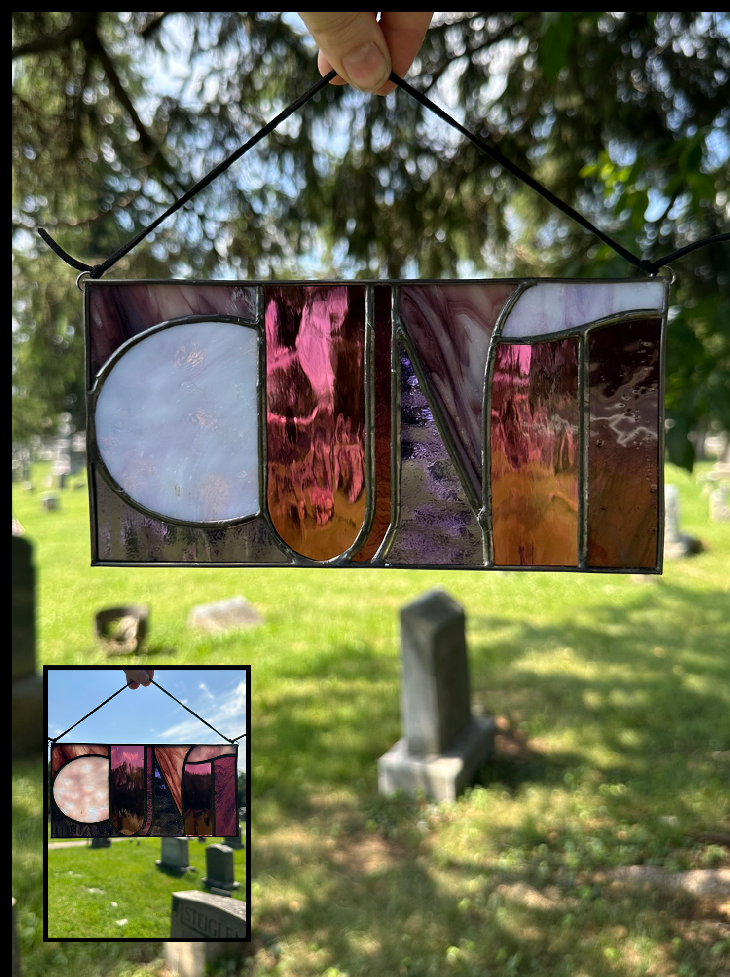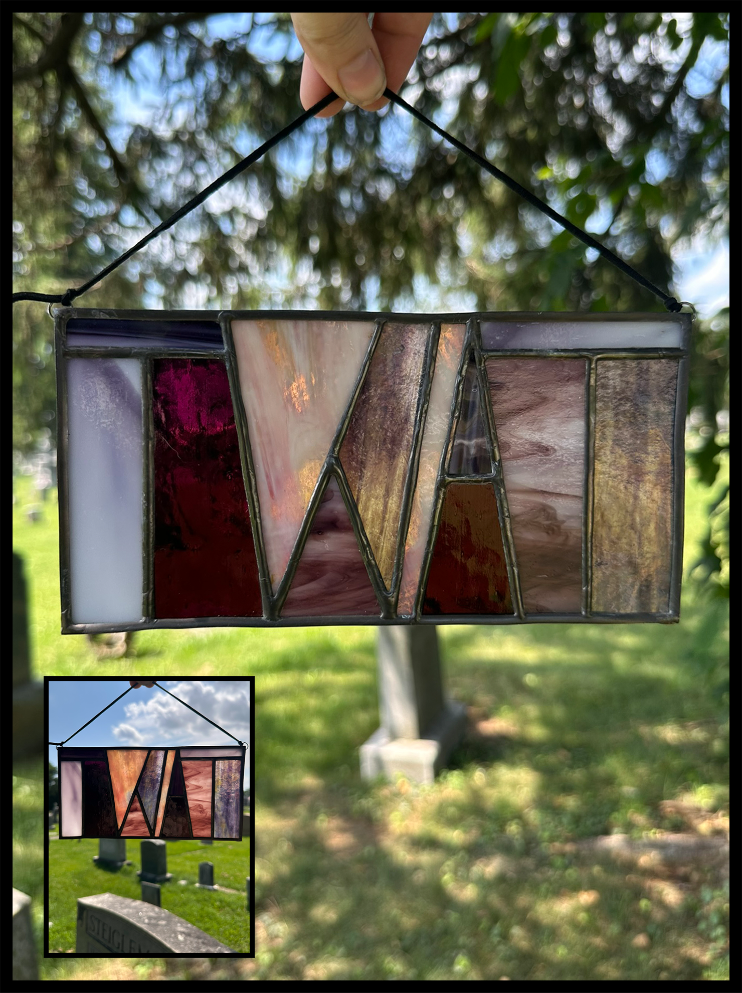 Materials: Stained Glass (Spectrum, Oceanside, Kokomo, Wissmach, Designer Glass, Lambert's, Bullseye, Van Gogh, and/or Youghiogheny glass), solder, copper foil, lead came, and patina (black or copper)