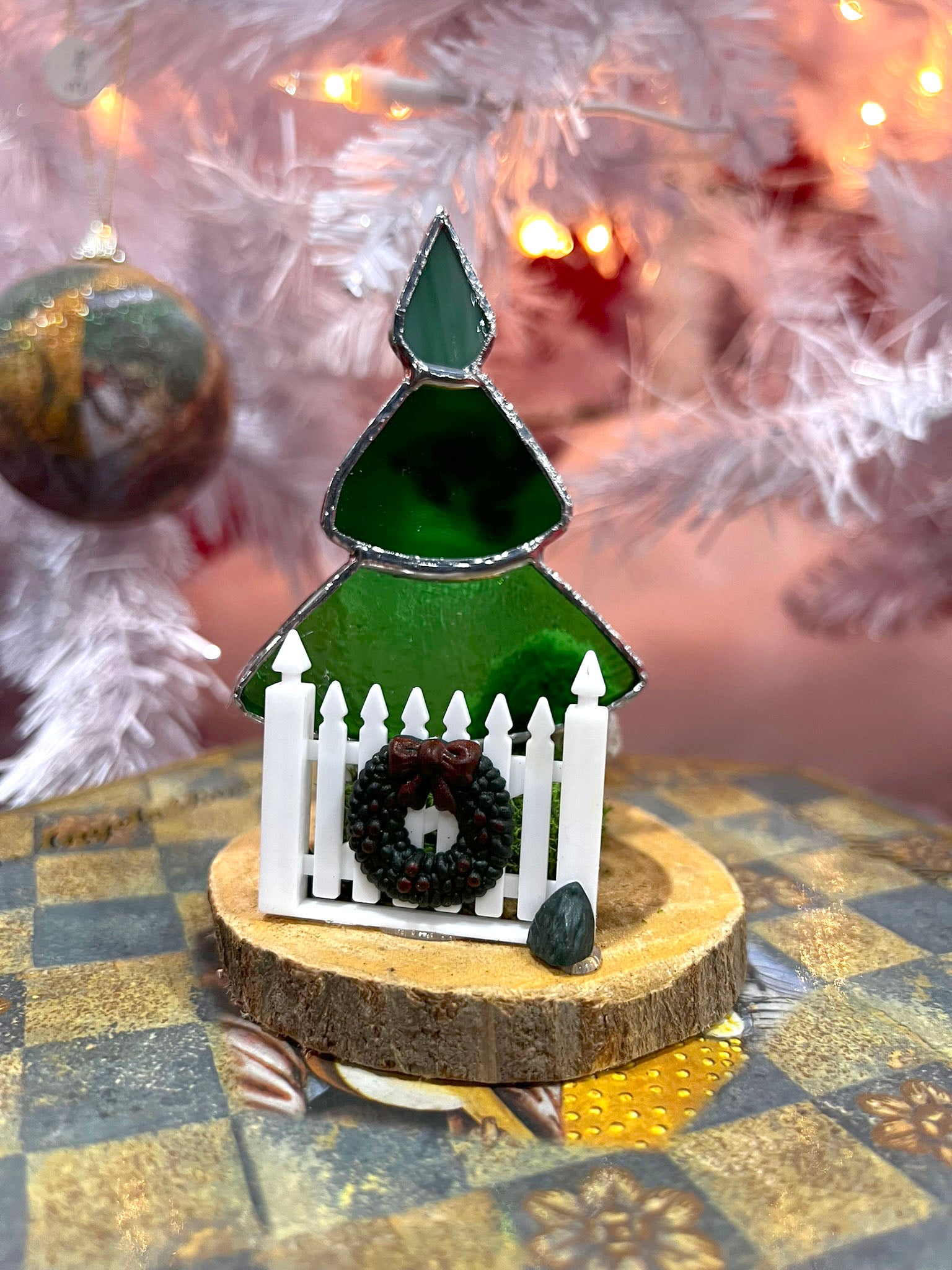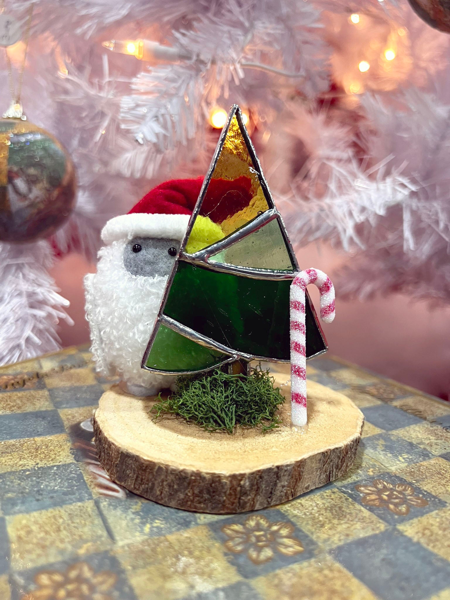 Add a touch of whimsy to your holiday decor with Gnome Homes. Each unique piece features a stained glass Christmas tree on a wooden base, showcasing a different scene. No two are alike, making it a one-of-a-kind addition to your home. A must-have for any quirky collector!