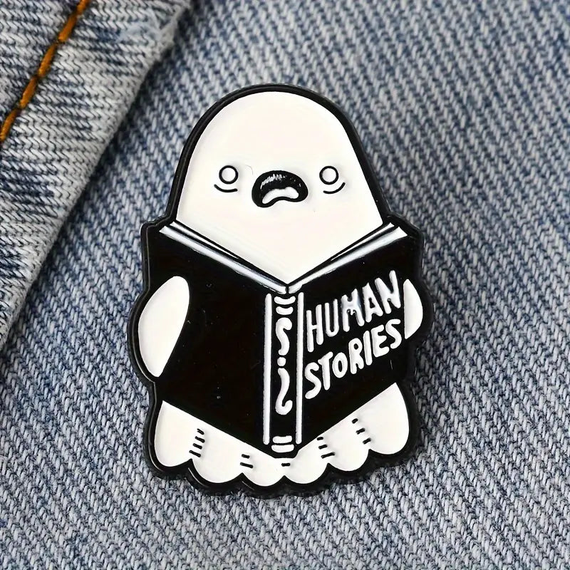 Spook up your style game with our Human Stories Enamel Pin! Featuring a ghost indulging in some light reading, this quirky pin is a playful addition to any outfit. Perfect for book lovers and paranormal enthusiasts alike. Don't miss out - it's boo-ktastic!