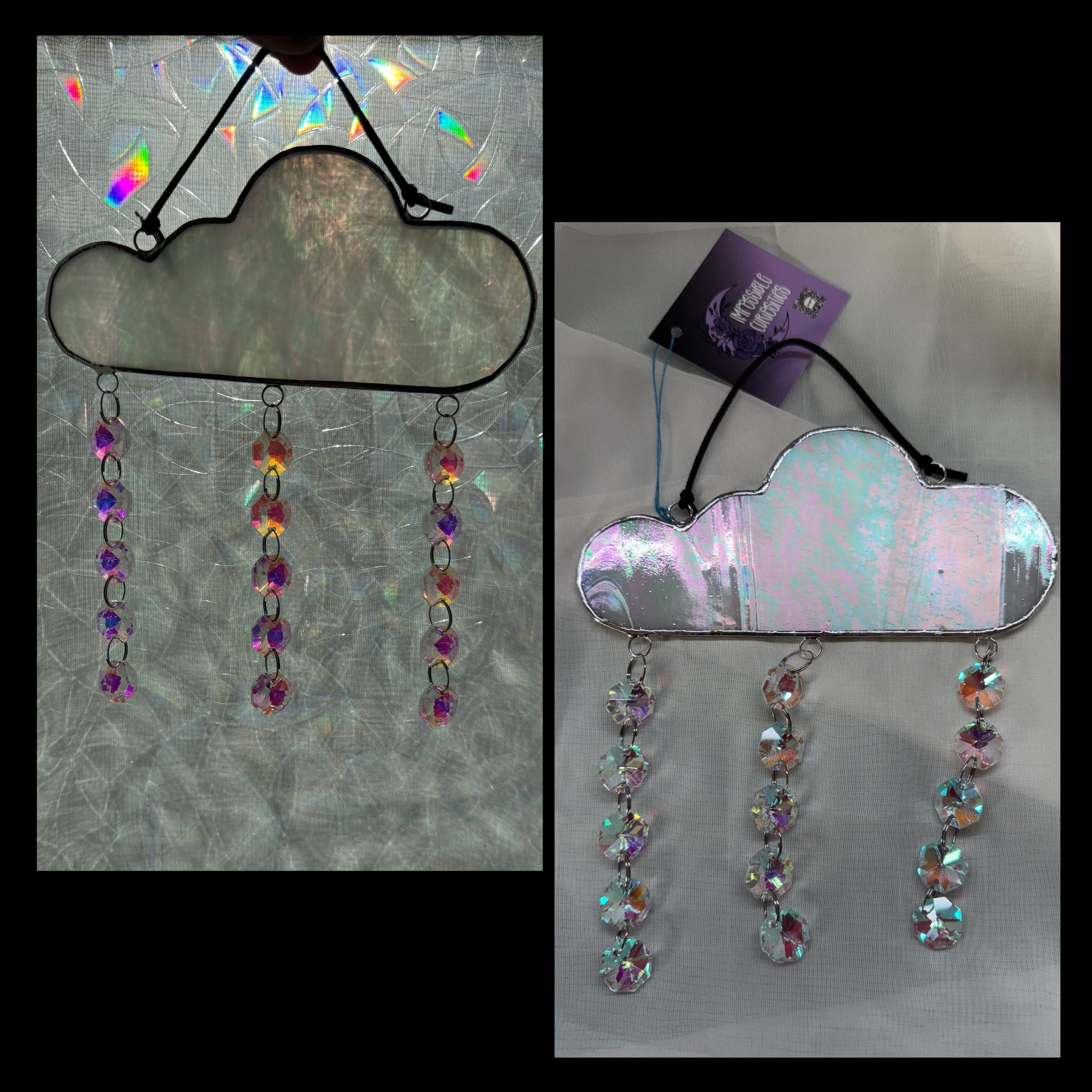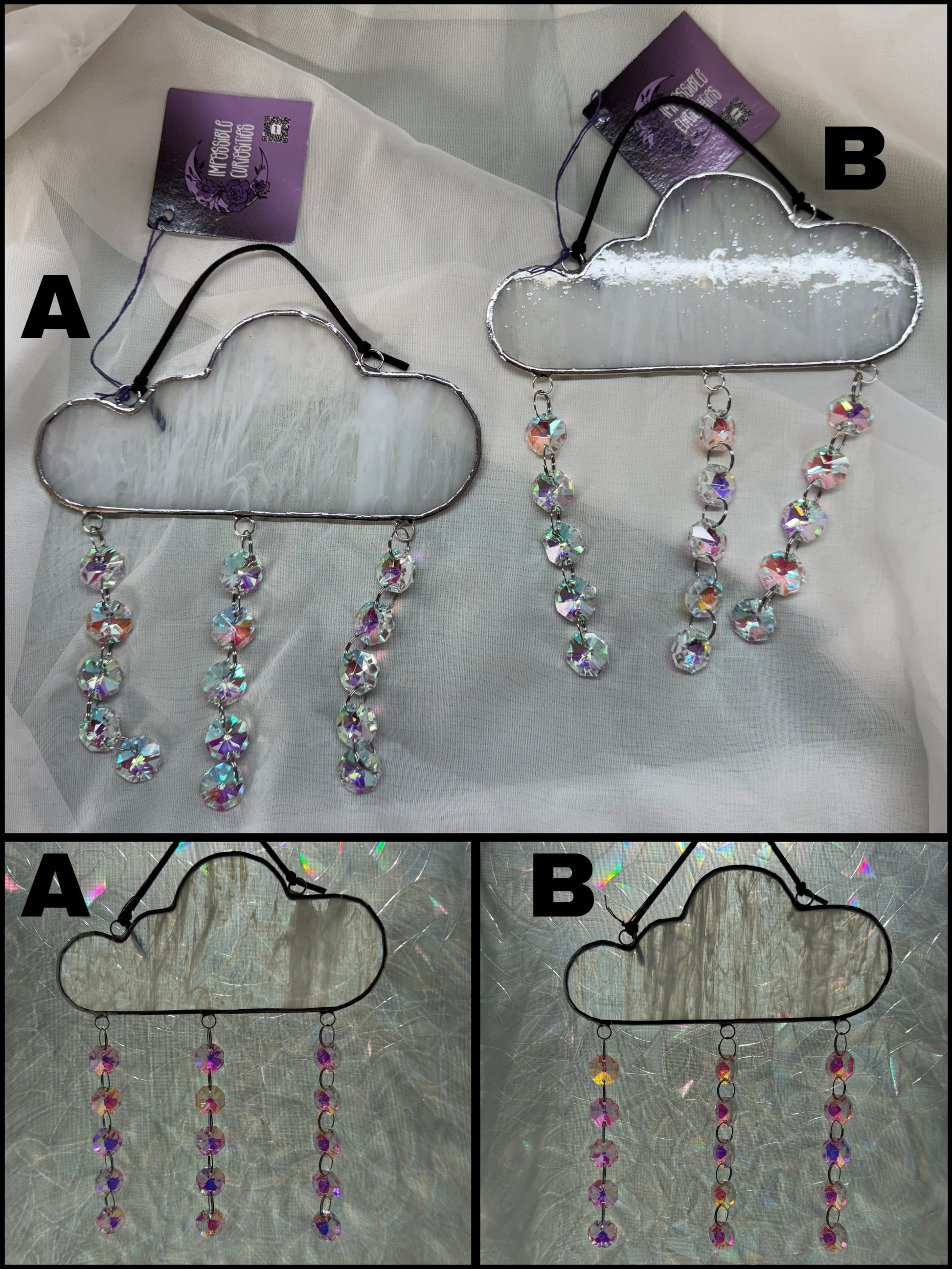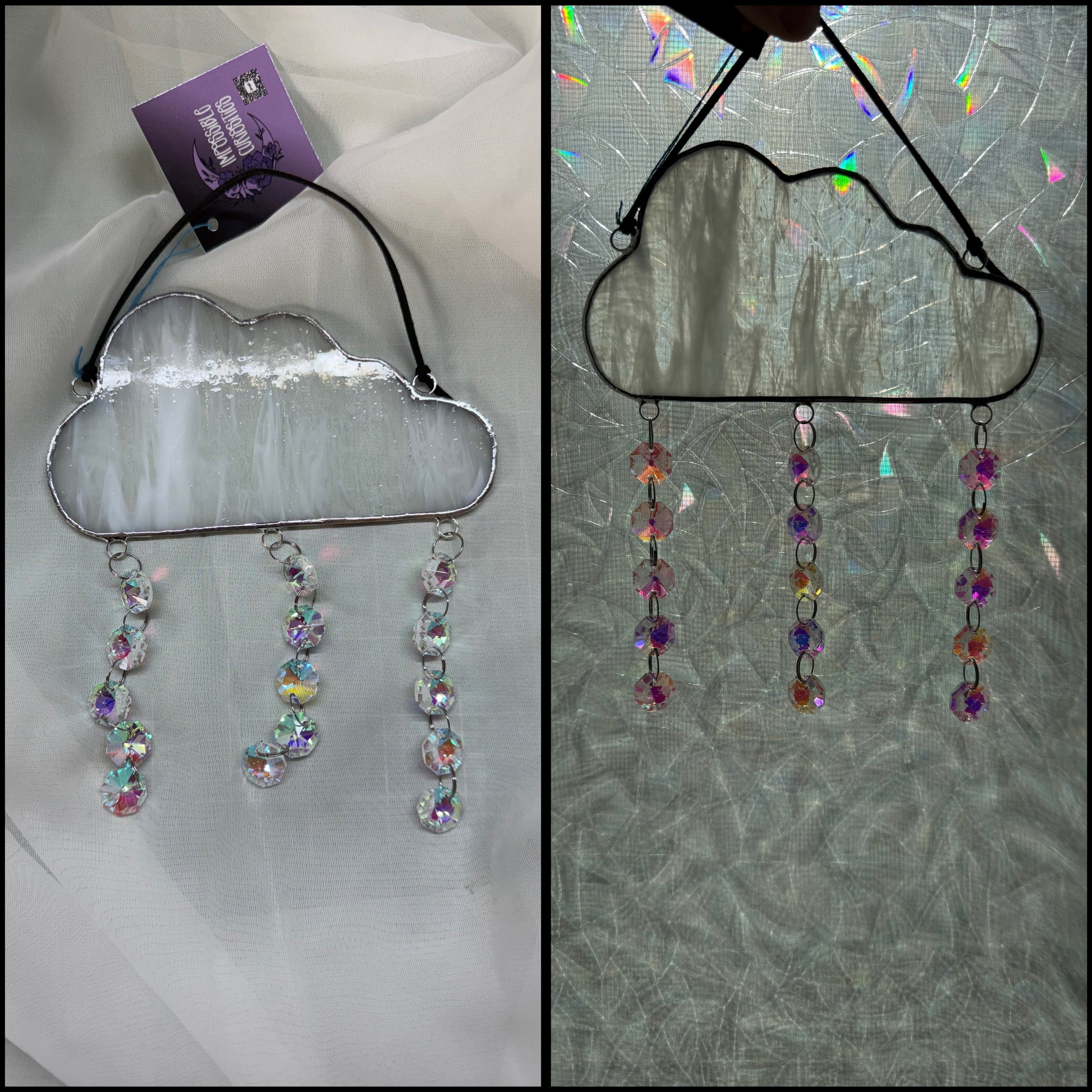 Rain Cloud brings the soothing essence of a gentle rain shower into your home with its serene design. Delicately crafted, this exquisite piece captures the essence of a fluffy cumulus cloud releasing its refreshing droplets. Each intricately cut piece of stained glass is meticulously assembled to create a mesmerizing play of light and color. Hang it in a window to scatter prisms of rainbow hues throughout your space or display it as a focal point to evoke a sense of calm and tranquility. Embrace the beauty of nature indoors with "Rain Cloud," a timeless masterpiece that invites you to find solace in the gentle rhythm of the rain.