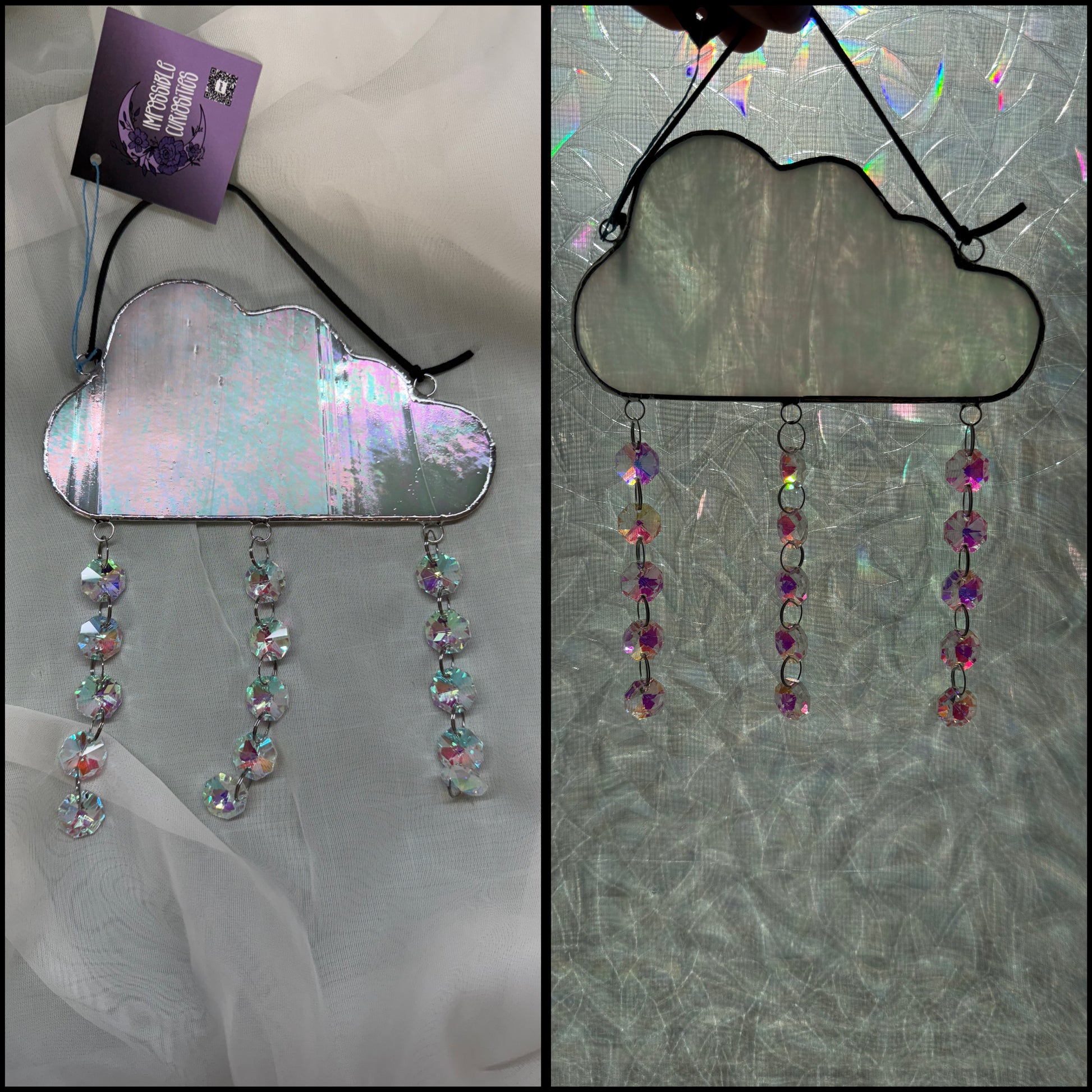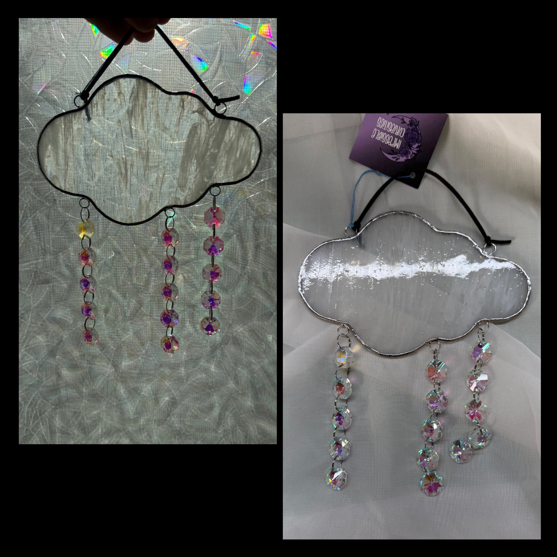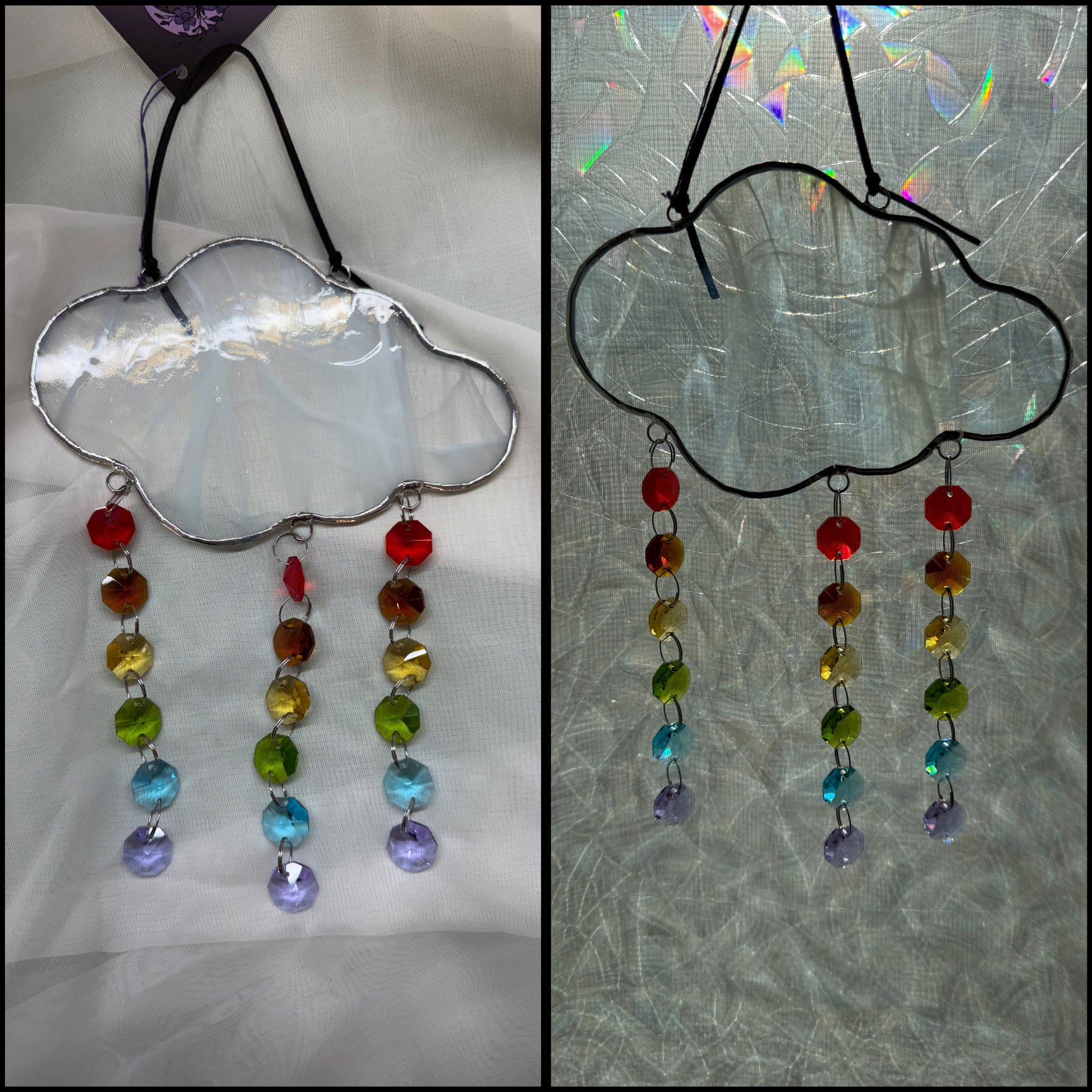 Rain Cloud brings the soothing essence of a gentle rain shower into your home with its serene design. Delicately crafted, this exquisite piece captures the essence of a fluffy cumulus cloud releasing its refreshing droplets. Each intricately cut piece of stained glass is meticulously assembled to create a mesmerizing play of light and color. Hang it in a window to scatter prisms of rainbow hues throughout your space or display it as a focal point to evoke a sense of calm and tranquility. Embrace the beauty of nature indoors with "Rain Cloud," a timeless masterpiece that invites you to find solace in the gentle rhythm of the rain.