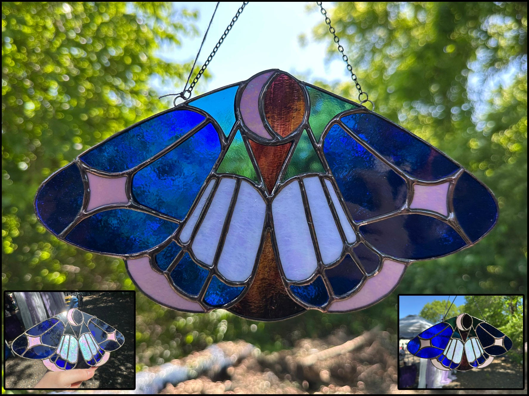 Illuminate your space with the enchanting Starlit Lepidoptera stained glass suncatcher, a stunning piece that beautifully captures the delicate elegance of a moth adorned with celestial elements. Crafted with vibrant colors and intricate details, this suncatcher transforms sunlight into a mesmerizing display of light and shadow, creating a magical atmosphere in any room. Perfect for windows, gardens, or as a unique gift, let the Starlit Lepidoptera bring a touch of whimsy and wonder to your home decor.