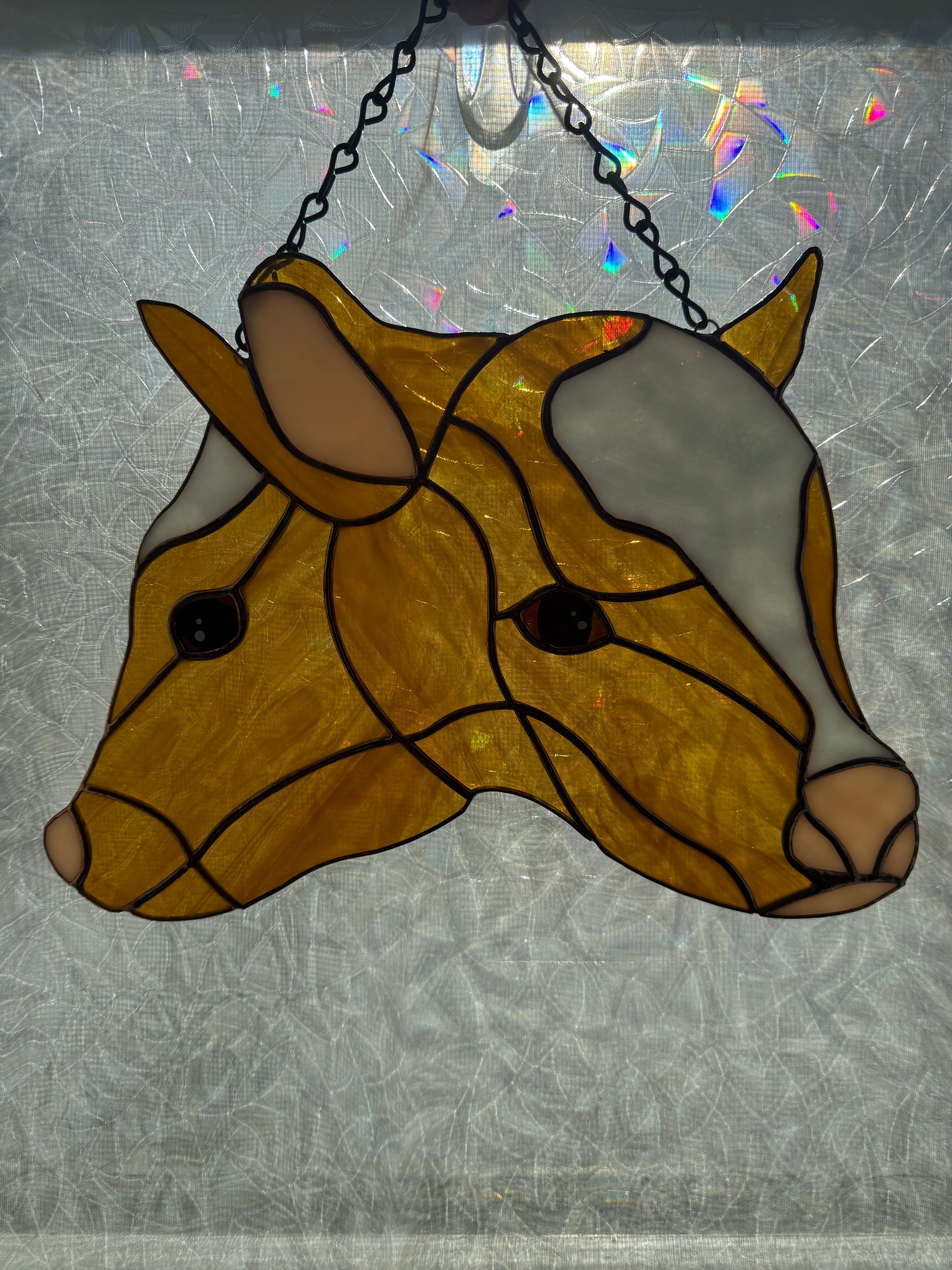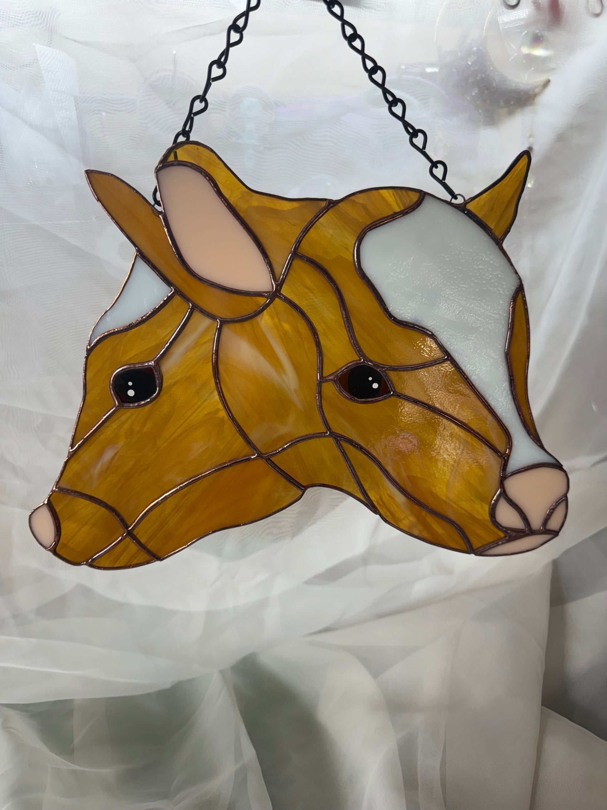 Behold the haunting beauty of our stained glass suncatcher, a mesmerizing piece that captures the essence of the macabre with its intricate design. Featuring the enigmatic two-headed calf, Moo-a Deux, this artwork casts eerie shadows and vibrant colors that dance across your walls, invoking a sense of wonder and unease. Perfect for those who appreciate the darker side of art, this suncatcher not only enhances your space but also serves as a conversation starter, drawing in the curious and the brave. Embrace the strange and let Moo-a Deux illuminate your home with its otherworldly charm.