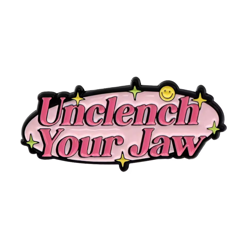 Keep calm and carry on with the playful Unclench Your Jaw enamel pin. This quirky accessory is a fun reminder to relax and take it easy, perfect for adding a lighthearted touch to your jacket, backpack, or hat. Wear it as a little nudge to breathe and smile throughout your day.